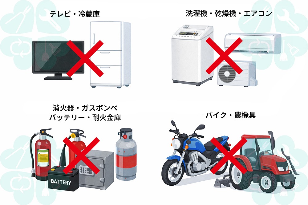回収不可品が1点でも混ざると手間が増えます。迷う場合は、回収不可品が混ざる場合の相談窓口を使うと、処分方法の切り分けがスムーズです。