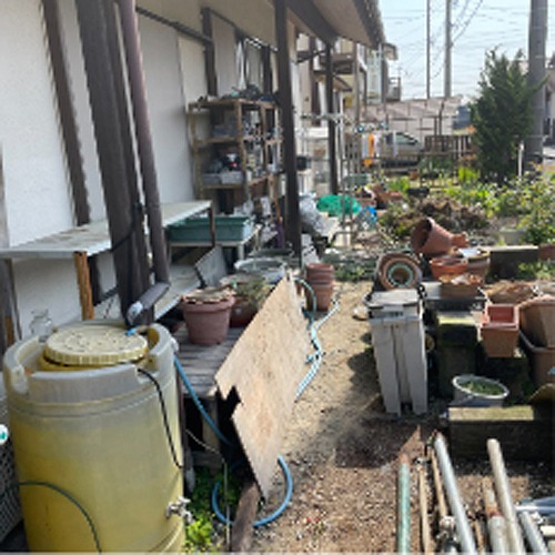 - 庭まわりの不用品:鉢、鉢棚、タンク、ホース、パイプ、木材、資材類