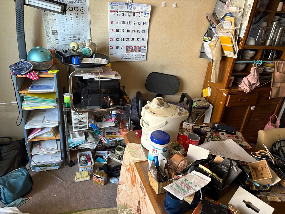 ご親族を亡くされたことをきっかけに整理が必要となったお部屋は、長年手がつけられず、生活用品やゴミが蓄積した、いわゆるゴミ屋敷に近い状態でした。